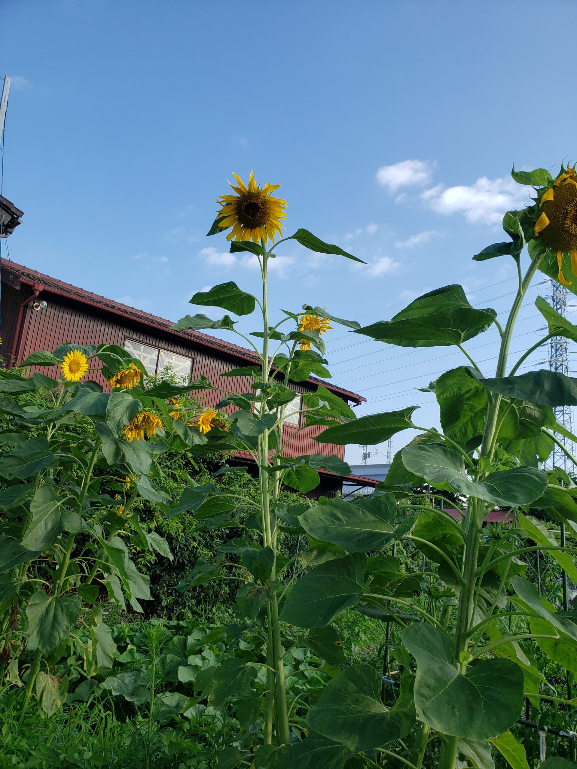 農園の1区画に咲き誇るひまわりの群れ