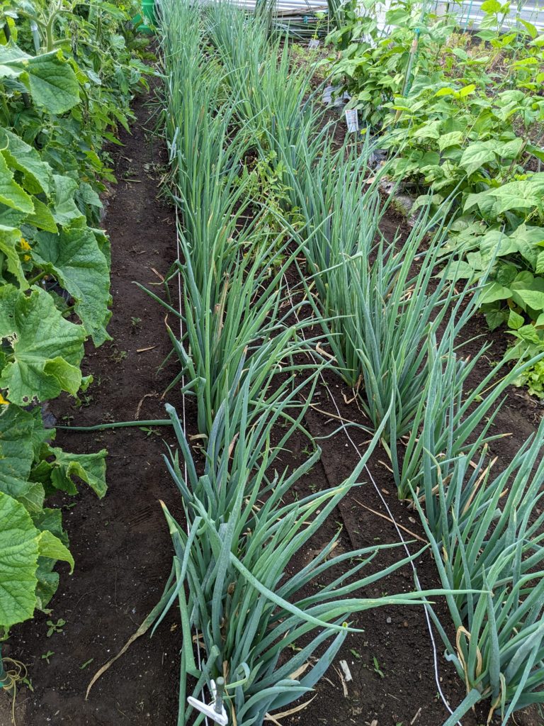育ち具合も達人(左)のネギはビシッとゲンキです( •̀ •́ゞ)ビシッ!!