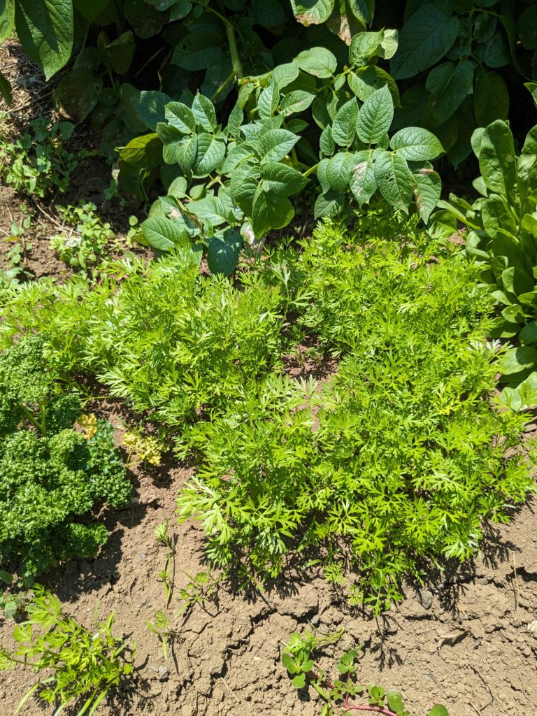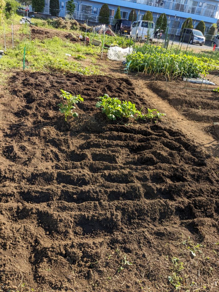 真ん中でじゃがいも(前会員さまからの贈り物)がスクスクと育っておりました☺️