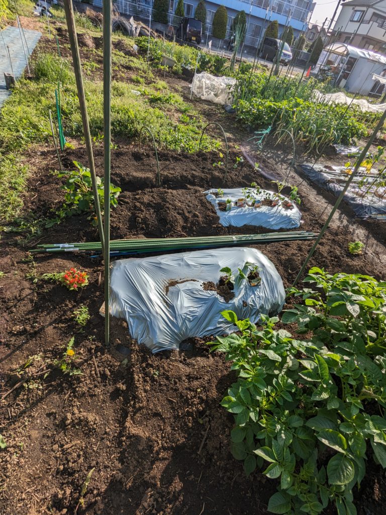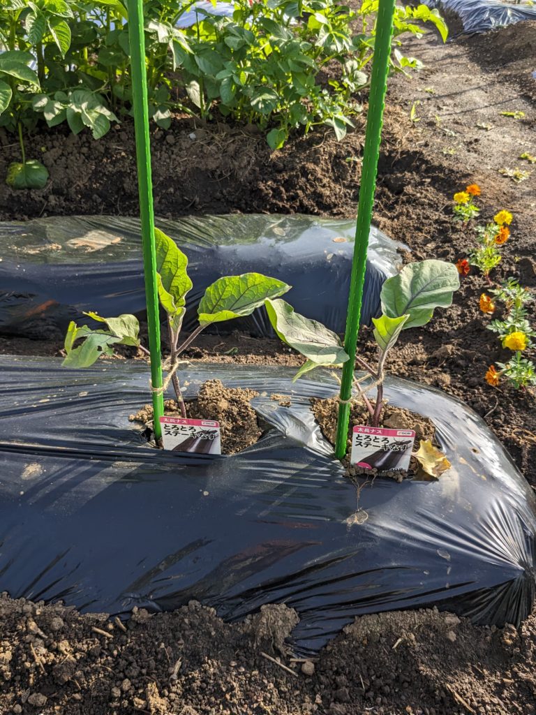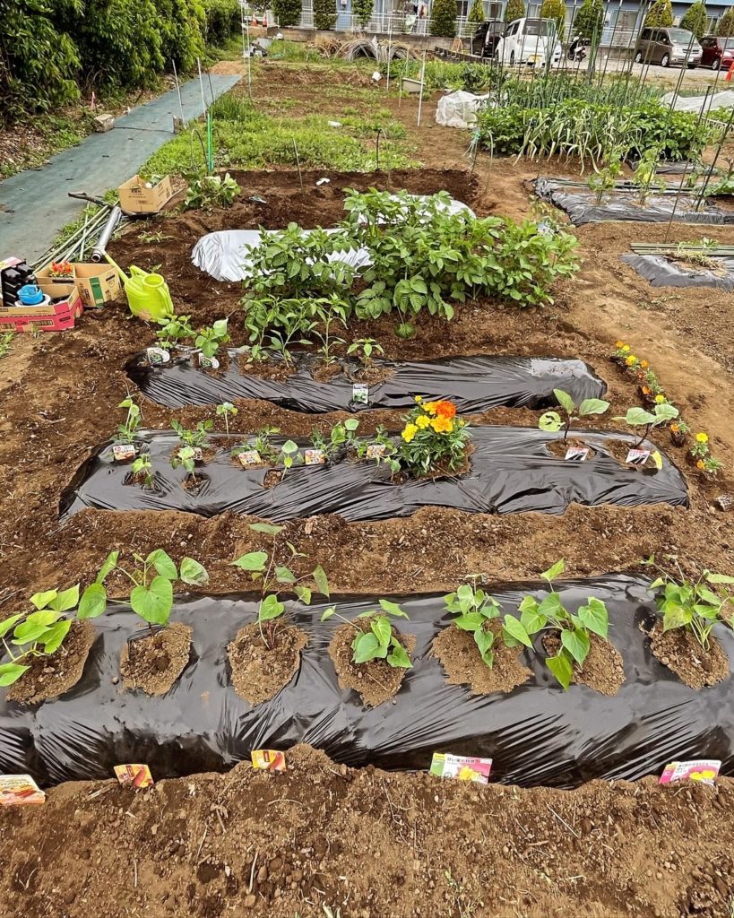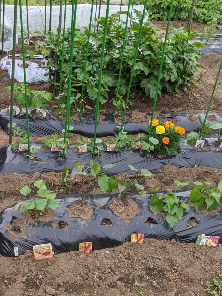植えた苗の種類が豊富🍆🫑🫛🍓🍠🥔🍅