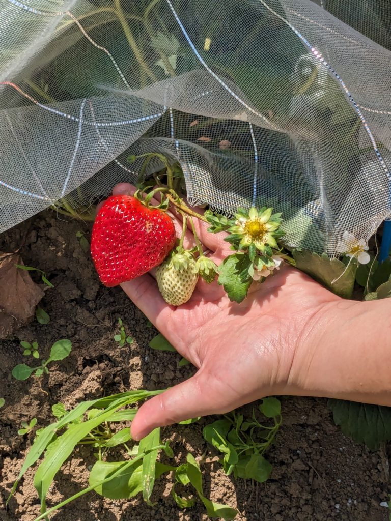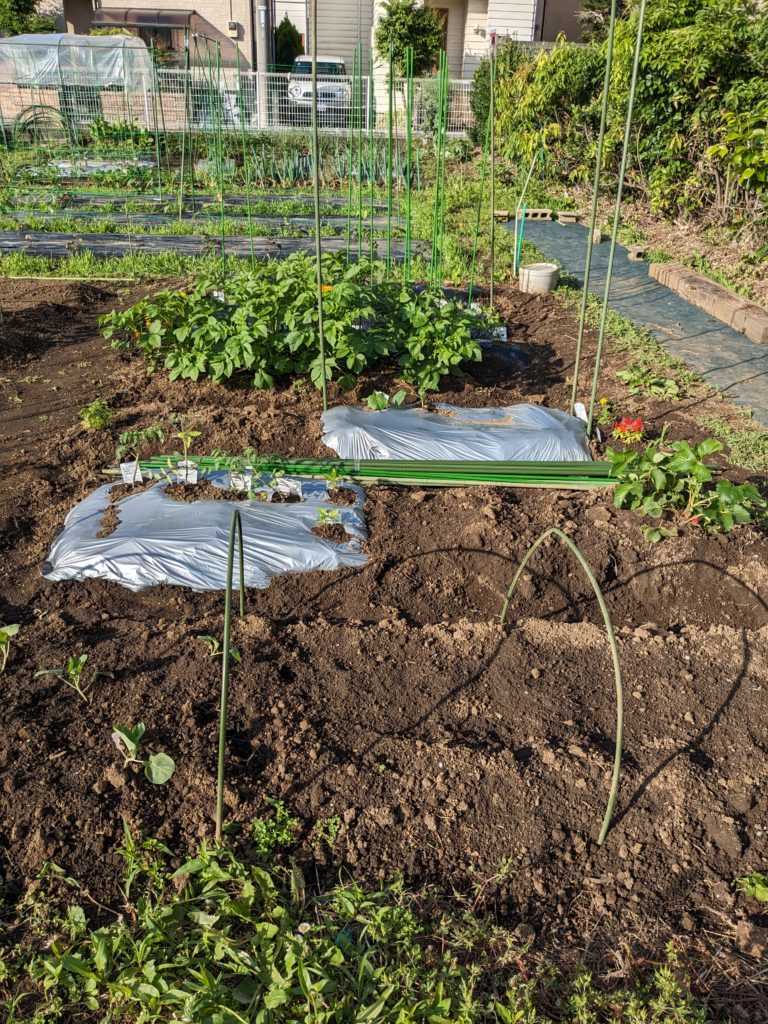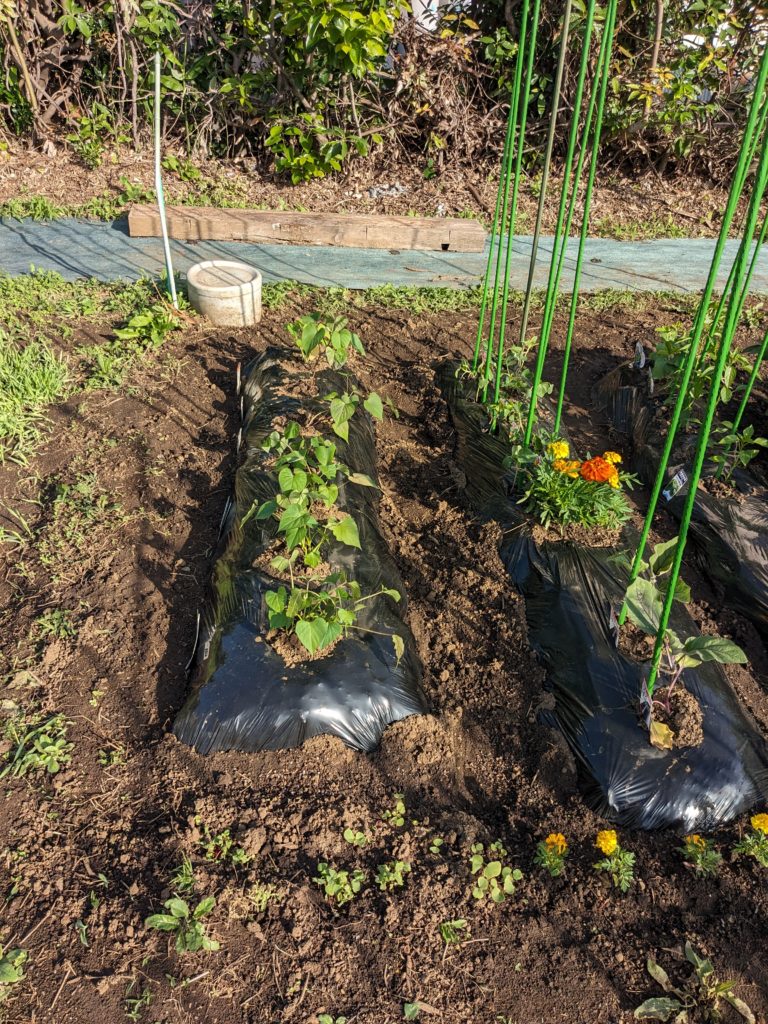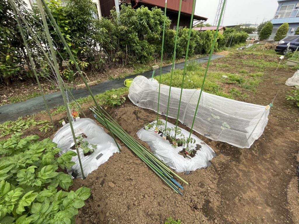 植えた苗の種類が豊富🍆🫑🫛🍓🍠🥔🍅