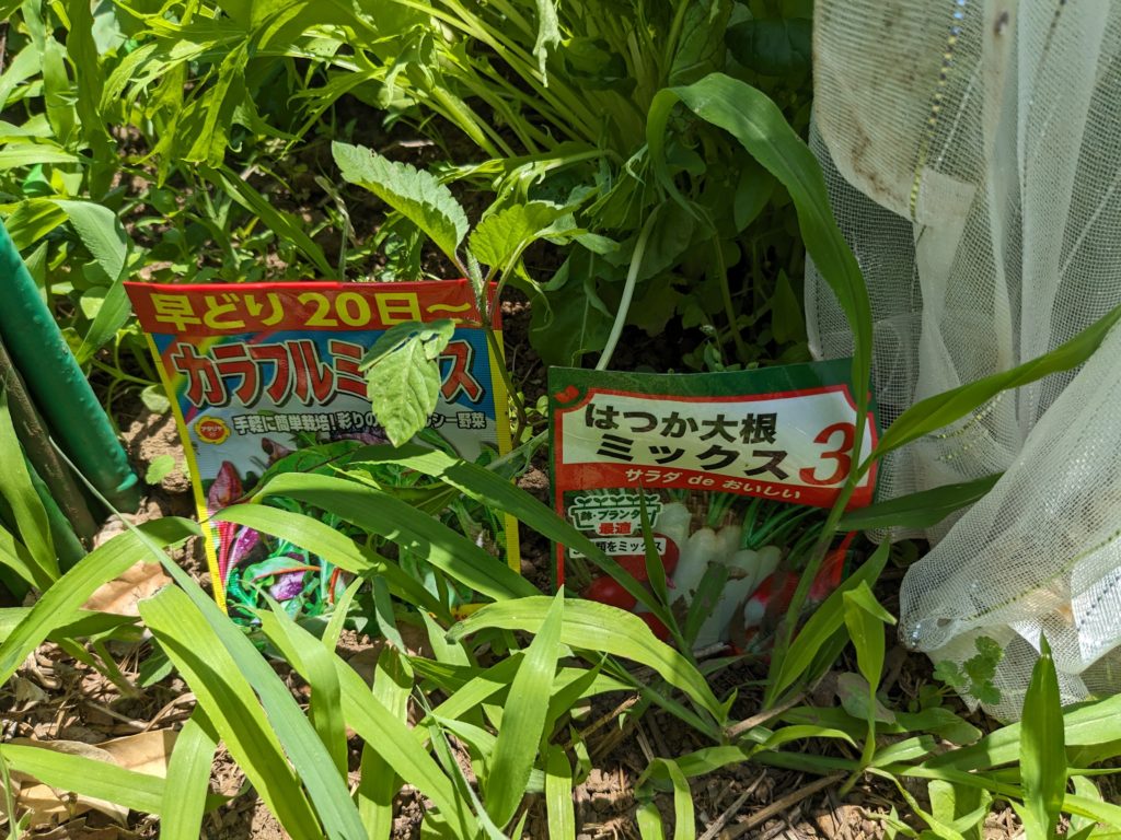 「朝のサラダにベビーリーフ。ナス、キューリ、落花生、紅はるかなど育てたいな」
