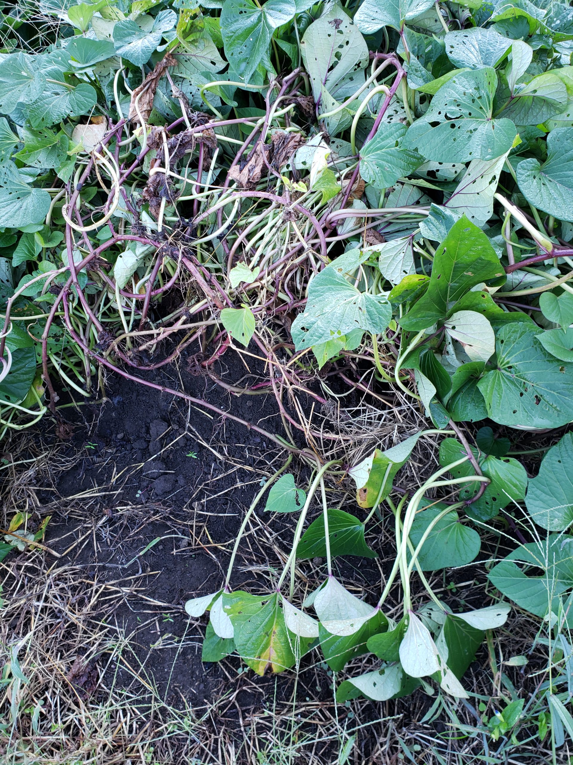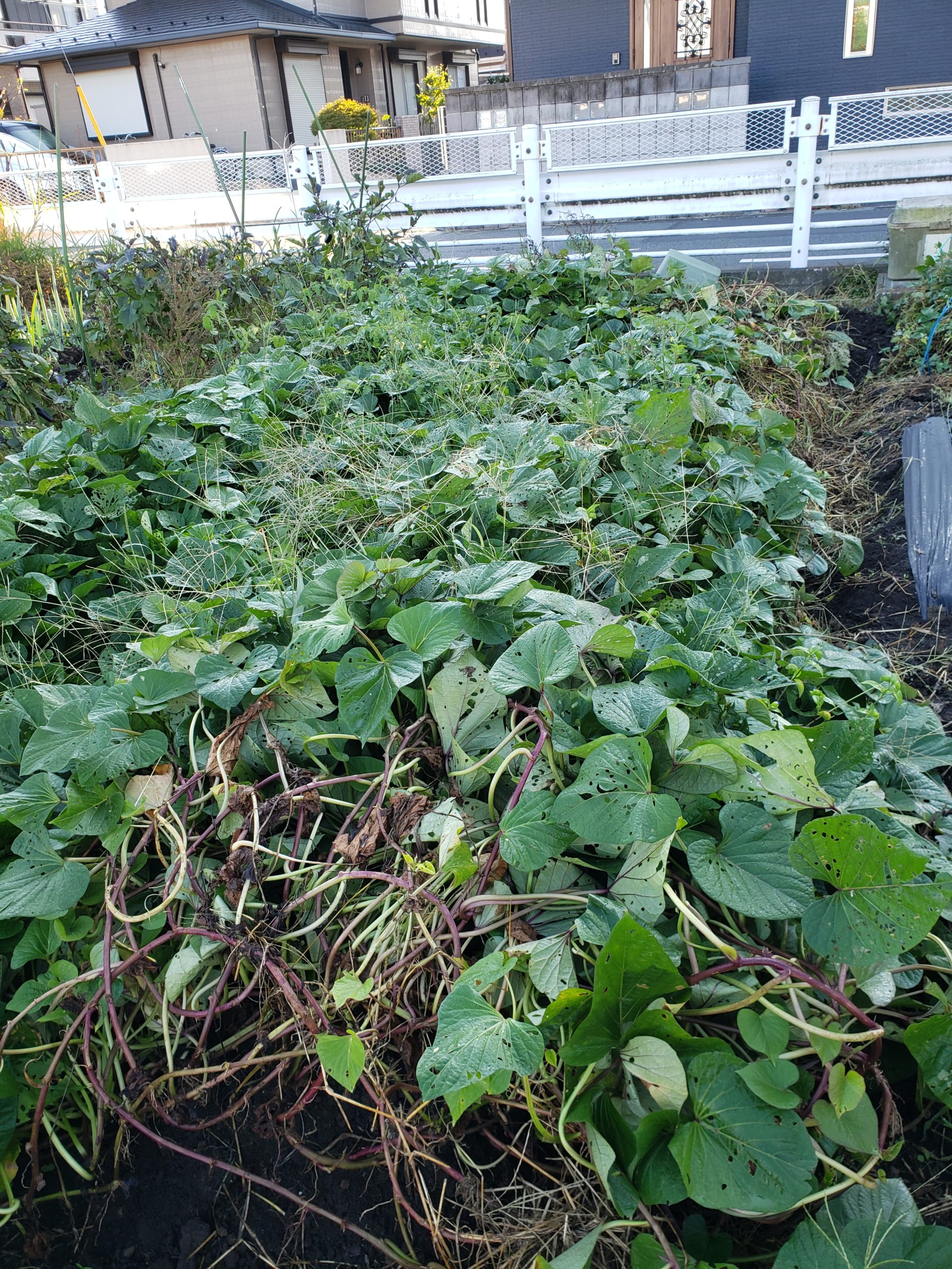 夏から秋にかけて盛んに育ってきたサツマイモは、晩秋に入ると収穫の時期を迎えます。 芋(塊根)の肥大経過をたどってみると、通常8〜9月に半数以上の芋が50g以上ぐらいになり、その後急生長し、10月中旬〜11月に入ると肥大が緩やかになりますが、霜が降りるころまで太り続けます。