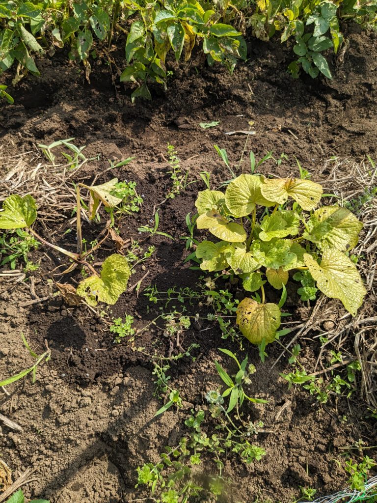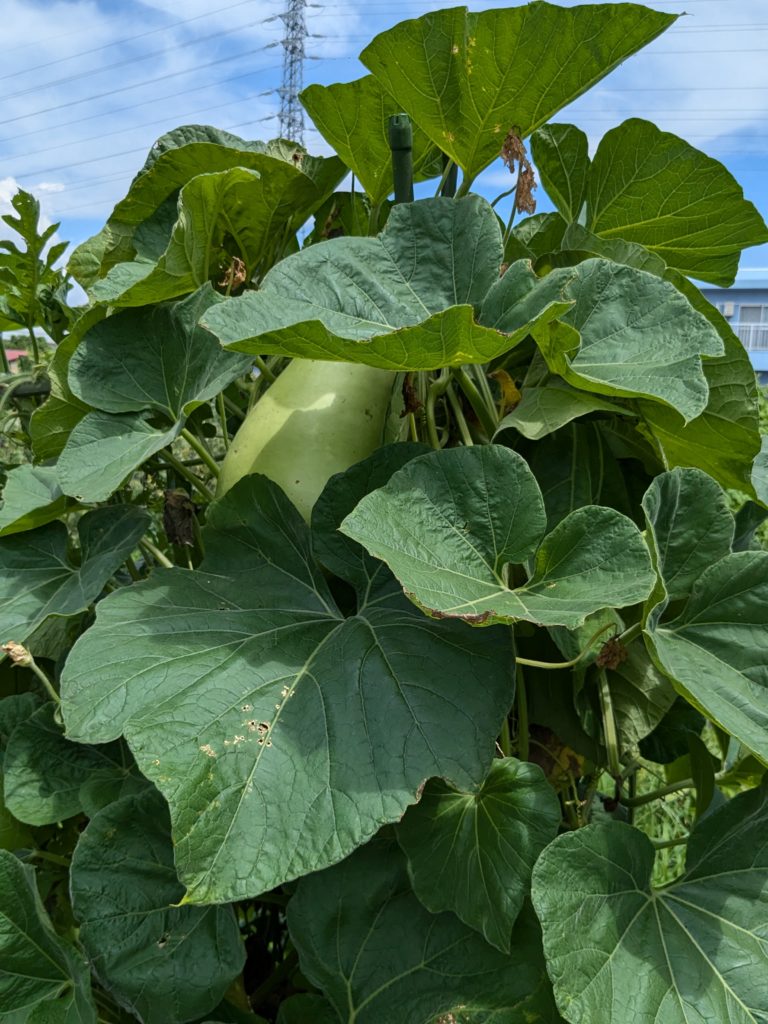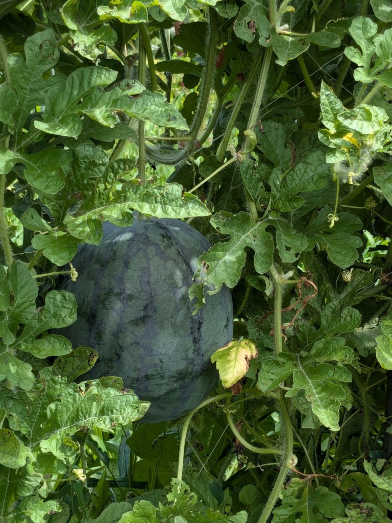 最後に、バッチリ実ってるウリとスイカのツーショット🍉