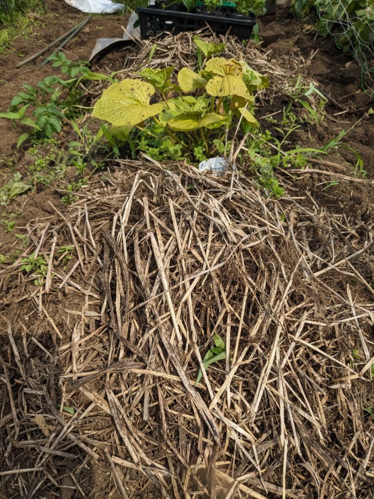 「土の微生物を増やすのと、保湿のためだよ。」