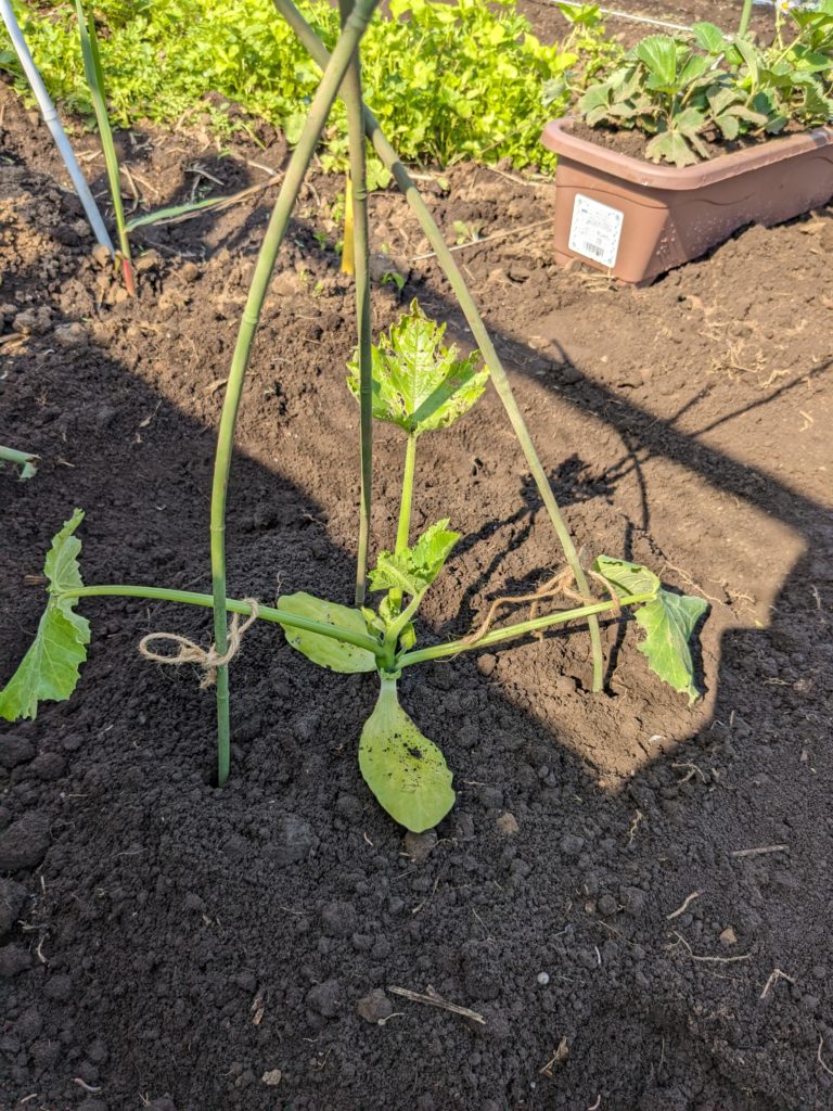 実は、ずいぶんと早くズッキーニがたくさん育ったのですが、本柱を支えきれずポキッと折れて失敗したのです(泣)