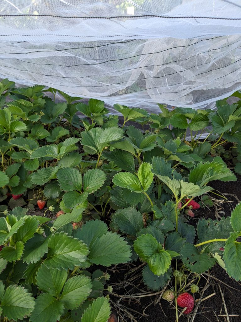 そこで、イチゴ🍓にも網をかけました!