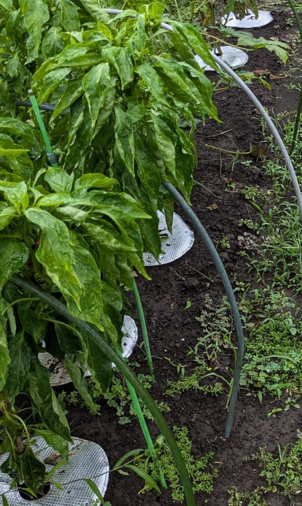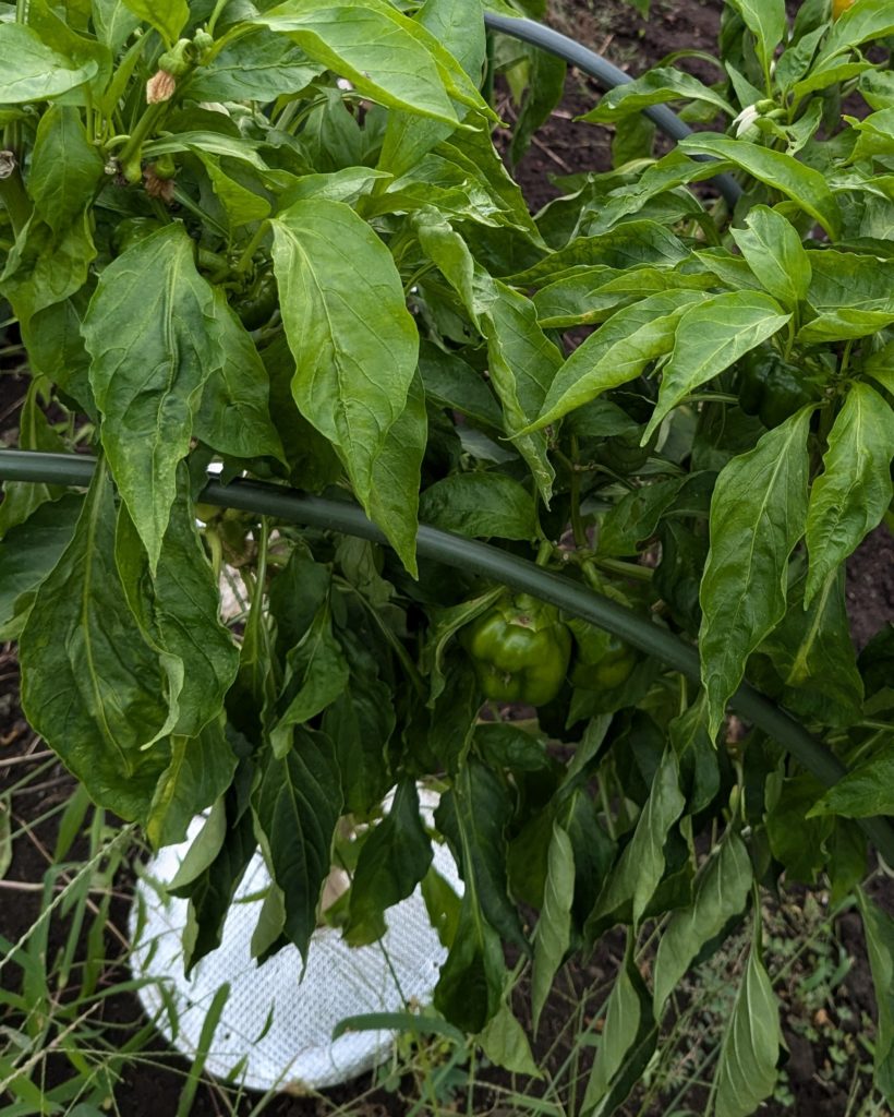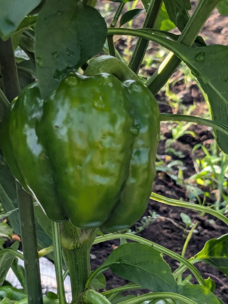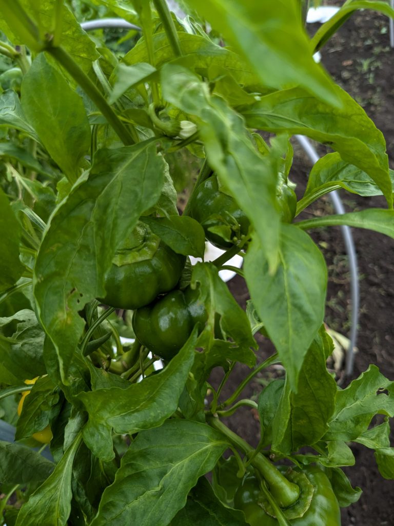 パプリカは、なんのお手入れもせず放置した結果、枝がたくさん伸びすぎて実がひしめき合って窮屈そうでした🫑